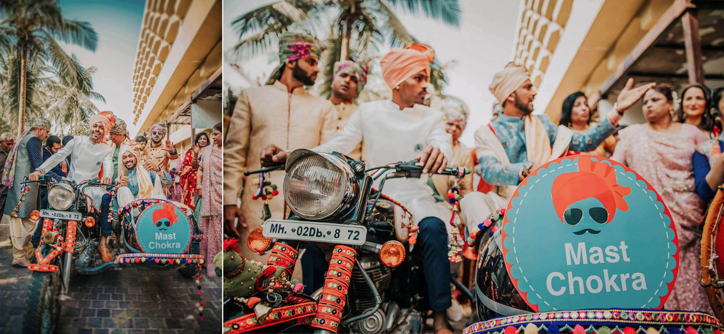Krunal chose to wear a powder blue sherwani with floral details for the wedding ceremony. As the families proceeded for the baraat, younger brother Hardik Pandya played chauffeur as they rode a quirkily decked up Royal Enfield to the venue.